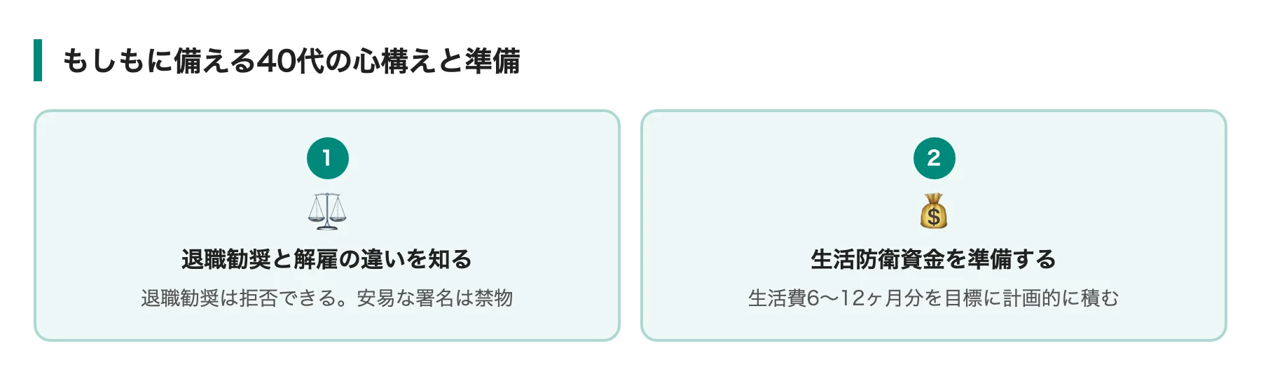 4. 退職勧奨と解雇の違いを知り、生活防衛資金を準備しておくことが安心につながる